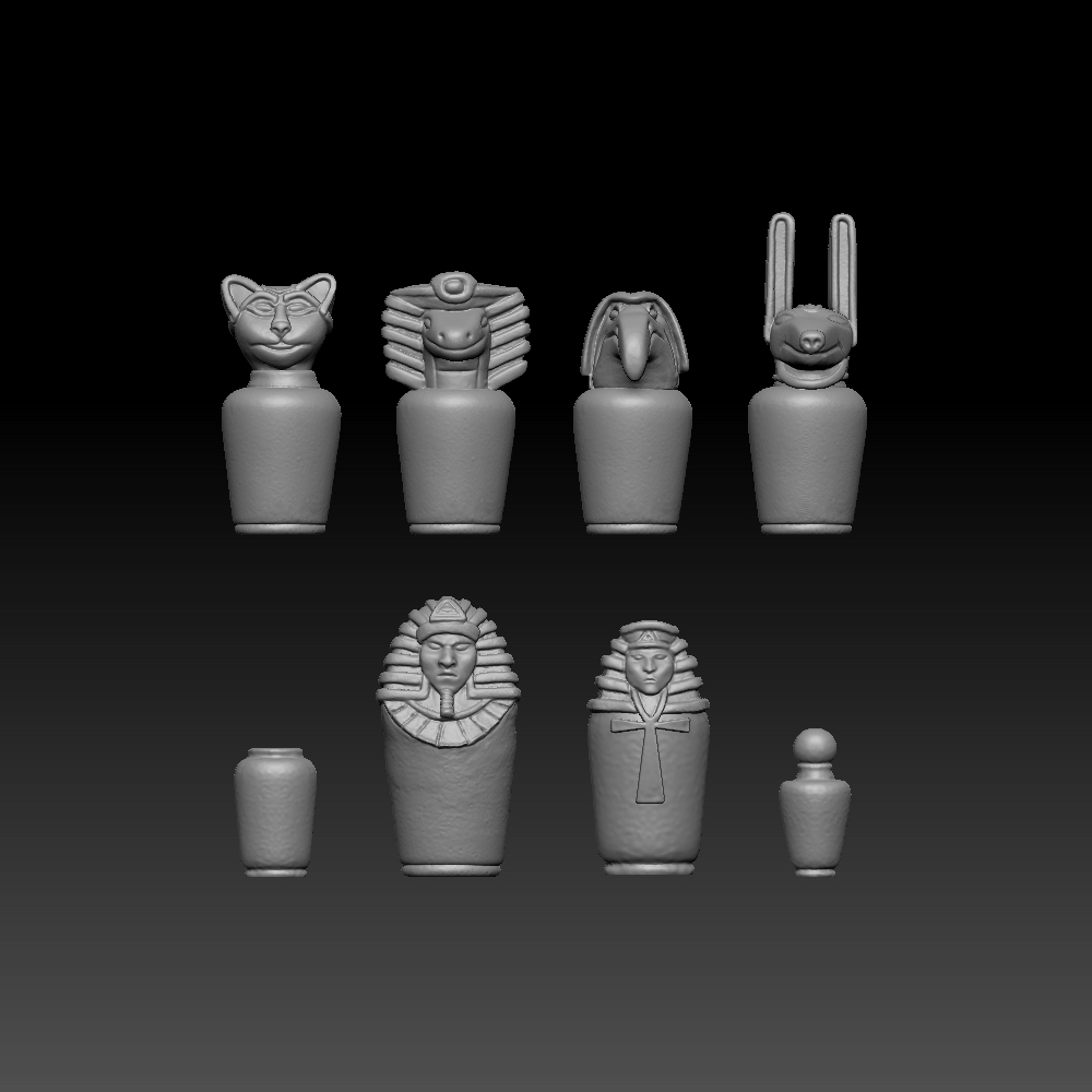 Originally hand sculpted by Byron & Oliver Townshend now digitized by 3-D scanning, above you can see some examples of the final scans, the detail is excellent and still retains that organic look which is hard to replicate when sculpting digitally.